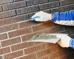 Restoring mortar joints between bricks for durability and clean appearance.